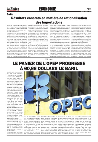LE PANIER DE L'OPEP PROGRESSE