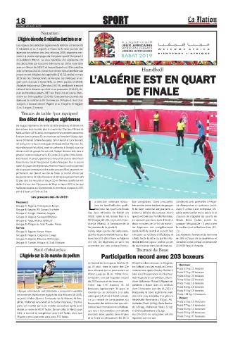 2019 lors des Championnats de Hongrie. Les breloques en ar- L’ALGÉRIE EST EN QUART