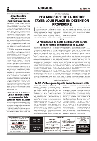 tembre prochain."Nous nous acheminons, en sep- Justice Tayeb Louh en dé- jour, 22 août 2019, Monsieur tialité et incitation à faux en provisoire".