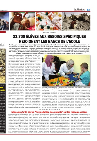 toire national, au titre de l’année scolaire 2019/2020. “Plus de 31.700 élèves aux besoins spécifiques ont rejoint les bancs de l’école au titre