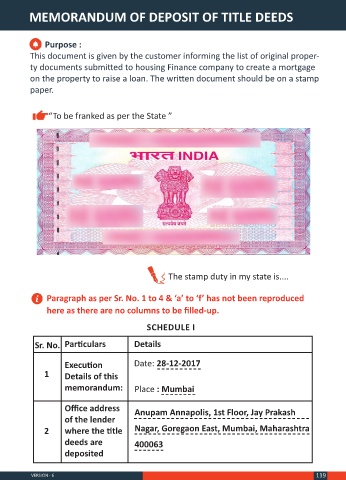 MEMORANDUM OF DEPOSIT OF TITLE DEEDS