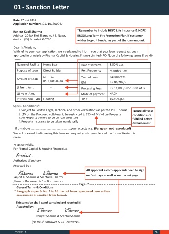 approved in principle by Piramal Capital & Housing Finance Limited (PCHF), on the following terms & condi-