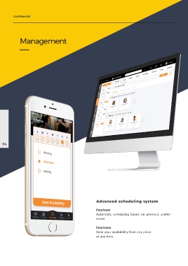 Confidential Management 34 Advanced scheduling system Employer Automatic scheduling based on previous prefer- ences Employee Send your availability from any place at any time.