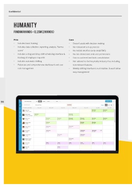 • Elaborate and comprehensive dashboard and user • Weekly shifting interface is not intuitive. Doesn’t allow