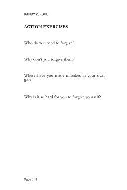 RANDY PERDUE ACTION EXERCISES Who do you need to forgive? Why don’t you forgive them? Where have you made mistakes in your own life? Why is it so hard for you to forgive yourself? Page 144