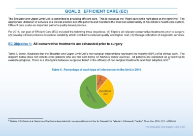 For 2016, our goal of Efficient Care (EC) included the following three objectives: (1) Explore all relevant conservative treatments prior to surgery;