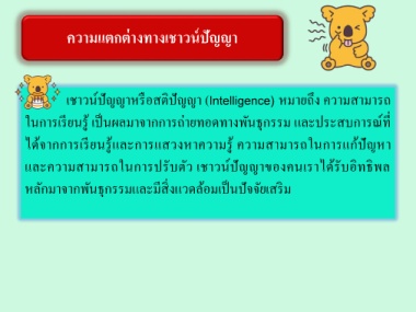 เชำวน์ปัญญำหรือสติปัญญำ (Intelligence) หมำยถึง ควำมสำมำรถ