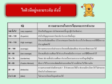 ไอคิวมีอยู่หลายระดับ ดังนี้