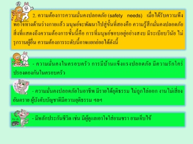 2. ควำมต้องกำรควำมมั่นคงปลอดภัย (safety needs) เมื่อได้รับควำมพึง