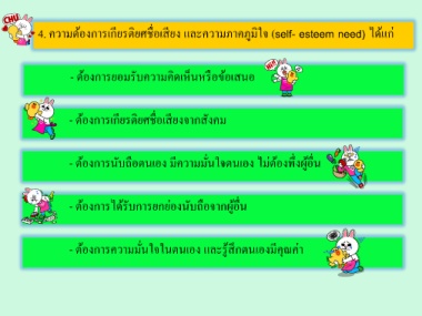 - ต้องกำรควำมมั่นใจในตนเอง และรู้สึกตนเองมีคุณค่ำ