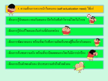 5. ควำมต้องกำรตระหนักในตนเอง (self-actualization need) ได้แก่
