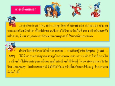 วิชำ และ enjoy ในประสบกำรณ์ จึงได้ให้ค ำแนะน ำเกี่ยวกับกำรใช้แรงจูงใจภำยนอก