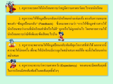 2. ครูควรจะให้ข้อมูลป้ อนกลับแก่นักเรียนอย่ำงแจ่มแจ้ง ตรงกับควำมหมำย