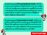 1.ระดับก่อนกฎเกณฑ์ (Preconventional Level) ระดับนี้ เด็ก
