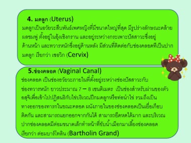 ปากช่องคลอดมีต่อมขนาดเล็กท าหน้าที่ขับน ้าเมือกมาเลี้ยงช่องคลอด
