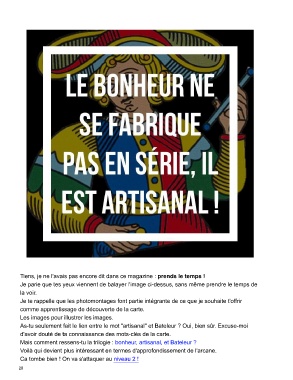 As-tu seulement fait le lien entre le mot "artisanal" et Bateleur ? Oui, bien sûr. Excuse-moi