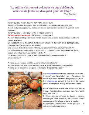 "La cuisine c'est un art qui, pour ne pas s'abâtardir,