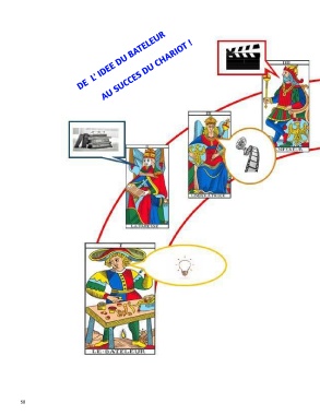 DE L' IDEE DU BATELEUR AU SUCCES DU CHARIOT ! Aux pages suivantes, vous découvrirez une traduction possible du cheminement d'une idée (représentée ici par le Bateleur) jusqu'au succès de sa réalisation. (carte représentée ici par le Chariot). 50
