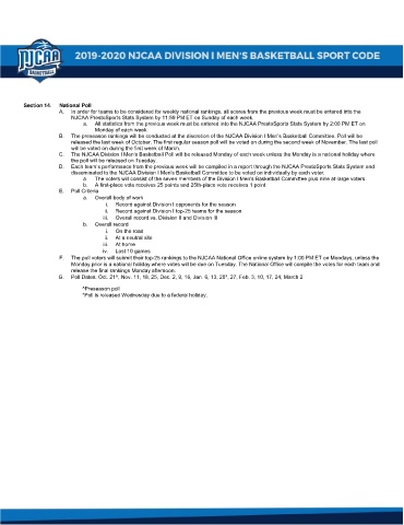B. The preseason rankings will be conducted at the discretion of the NJCAA Division I Men’s Basketball Committee. Poll will be