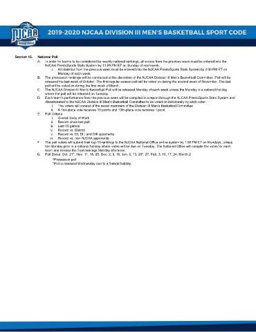 B. The preseason rankings will be conducted at the discretion of the NJCAA Division III Men’s Basketball Committee. Poll will be