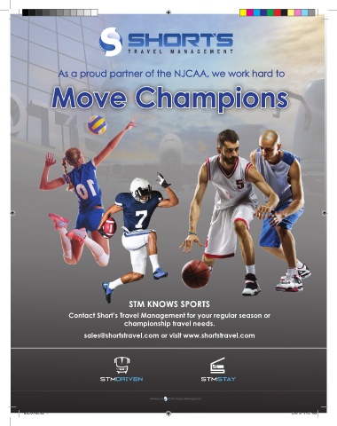 STM KNOWS SPORTS Contact Short’s Travel Management for your regular season or championship travel needs. sales@shortstravel.com or visit www.shortstravel.com STMDRIVEN STMSTAY divisions of Short’s Travel Management NJCAA Ad.indd 1 5/16/19 11:37 AM