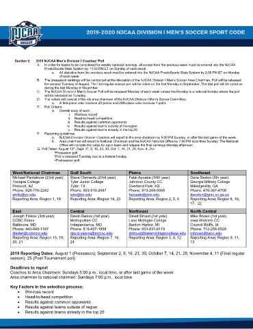 B. The preseason rankings will be conducted at the discretion of the NJCAA Division I Men’s Soccer Area Chairmen. Poll will be released