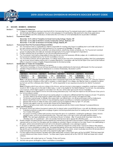 A. All regional, district and national tournament games shall be played under current NCAA Soccer rules with the following exceptions: