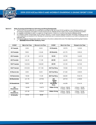 Section 6. Rules Governing NJCAA National Swimming and Diving Championship