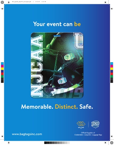BTI_splash_may2019_fullpage.pdf 1 5/31/19 3:55 PM Your event can be C M Y CM MY CY CMY K Memorable. Distinct. Safe. O cial Supplier of www.bagtagsinc.com Credentials • Lanyards • Luggage Tags