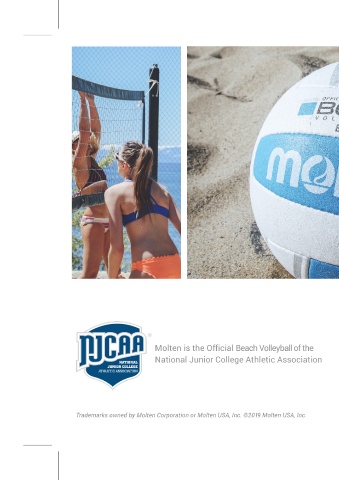 Molten is the Official Beach Volleyball of the National Junior College Athletic Association Trademarks owned by Molten Corporation or Molten USA, Inc. ©2019 Molten USA, Inc.