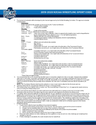 F. The tournament schedule will be developed by the host and approved by the NJCAA Wrestling Committee. The approved schedule