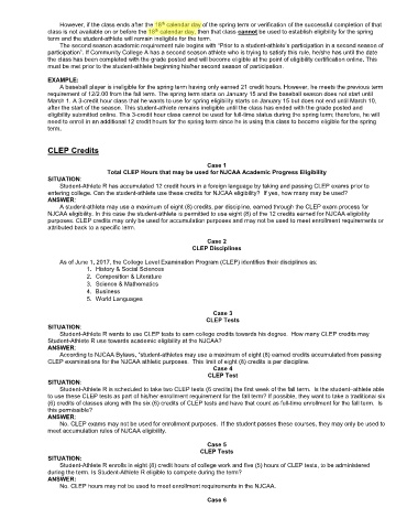 CLEP examinations for the NJCAA athletic purposes. This limit of eight (8) credits is per discipline.