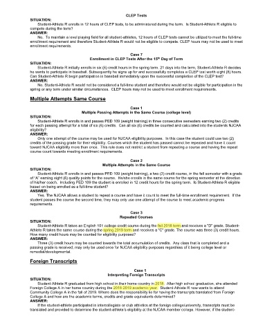 enrollment requirement and therefore Student-Athlete R would not be eligible to compete. CLEP hours may not be used to meet