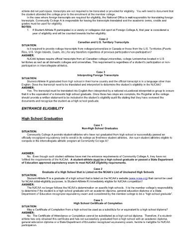 Community College A permits student-athletes who have not graduated from high school or successfully passed an