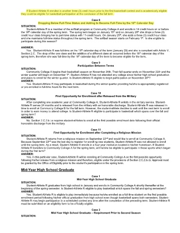 time to enroll at Community College B for the fall term. However, the student-athlete decides to wait until the next term to enroll