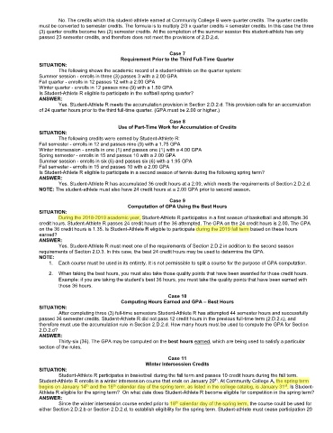 credit hours. Student-Athlete R passes 24 credit hours of the 36 attempted. The GPA on the 24 credit hours is 2.00. The GPA