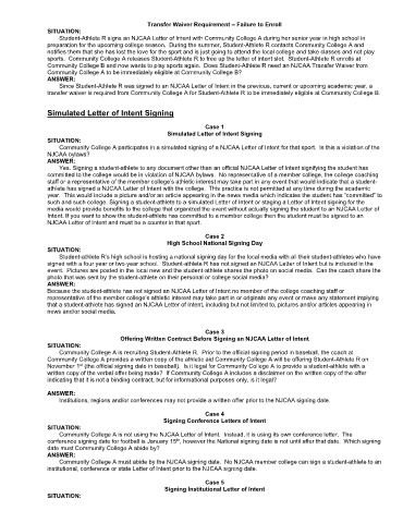 sports. Community College A releases Student-Athlete R to free up the letter of intent slot. Student-Athlete R enrolls at