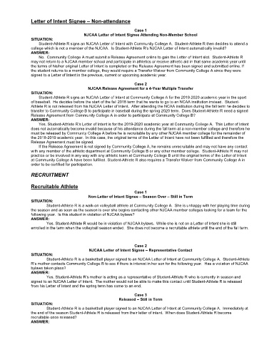 with any member of the athletic department at Community College B or any other member college. Student-Athlete R may not