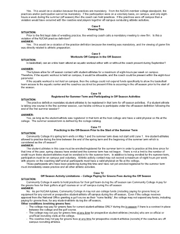 hours a week during the summer (off season) then the coach can hold practices. If the practices were off campus then a