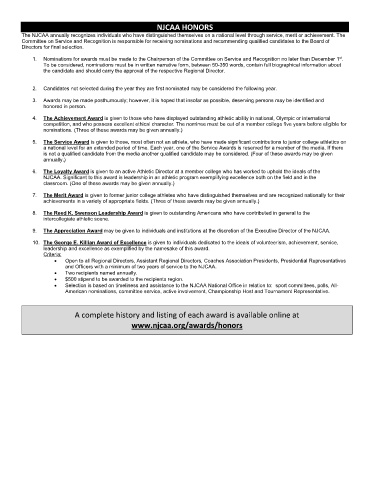 • Selection is based on timeliness and assistance to the NJCAA National Office in relation to: sport committees, polls, All-