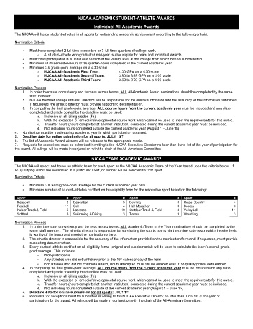 1. In order to ensure consistency and fairness across teams, ALL All-Academic Award nominations should be completed by the same