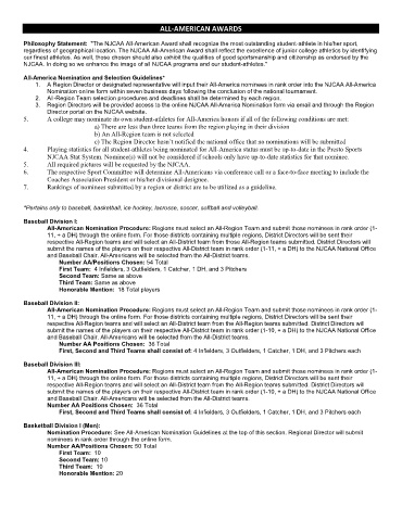 All-American Nomination Procedure: Regions must select an All-Region Team and submit those nominees in rank order (1-