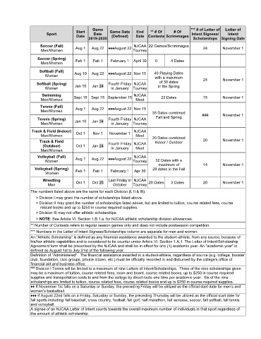 *** Numbers in the Letter of Intent Signees/Scholarships column are separate for men and women.