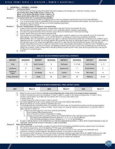 2020-2021 NJCAA DI WOMEN’S BASKETBALL DISTRICTS