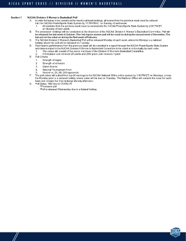 C. The NJCAA Division II Women's Basketball Poll will be released Monday of each week unless the Monday is a national