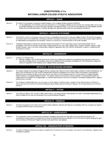 Section 1. The NJCAA’s mission is to promote, govern and foster a competitive environment for two-year college athletics. The NJCAA recognizes