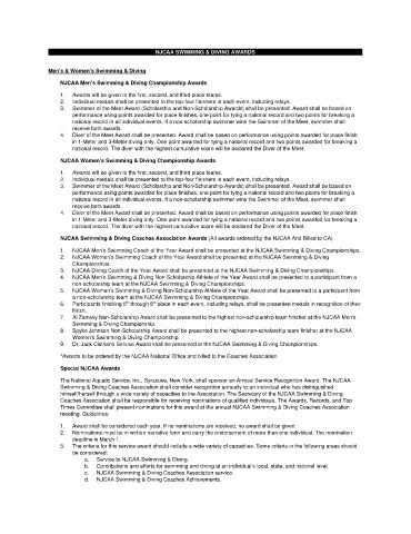 Times Committee shall present nominations for this award at the annual NJCAA Swimming & Diving Coaches Association