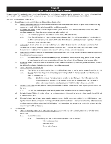 A.1. Athletic Scholarship Definition: An athletic scholarship is defined as any institutional athletic aid given to any student, from any