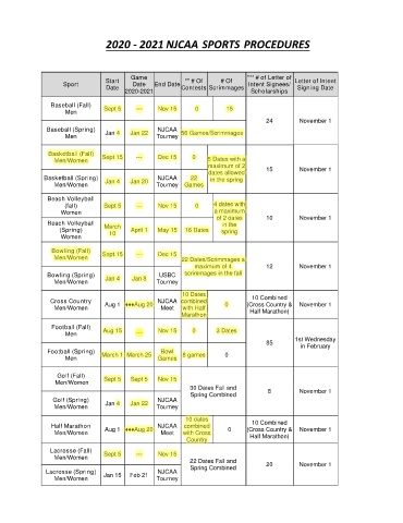 Baseball (Spring) Jan 4 Jan 22 NJCAA 56 Games/Scrimmages