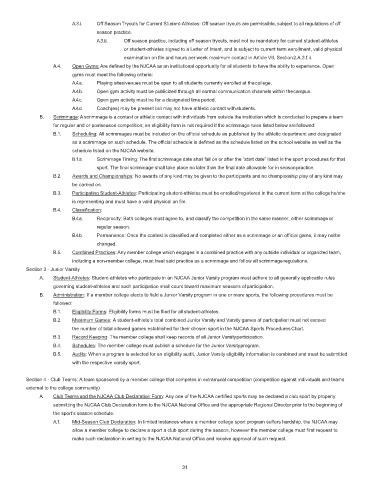 A.3.i. Off Season Tryouts for Current Student-Athletes: Off season tryouts are permissible, subject to all regulations of off